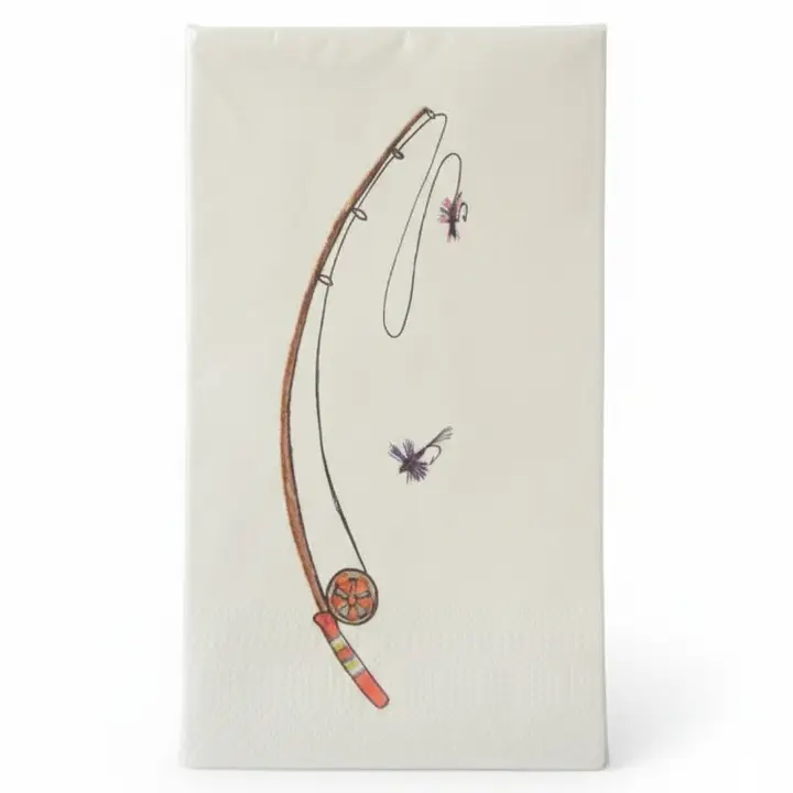 Bring the peaceful charm of the outdoors to your guest spaces with these Fly Fishing Paper Guest Napkins. Featuring a detailed design of vintage fly fishing rods and colorful flies, these napkins capture the serene spirit of a day spent by the river. Perfect for adding a refined, nature-inspired touch to any occasion.